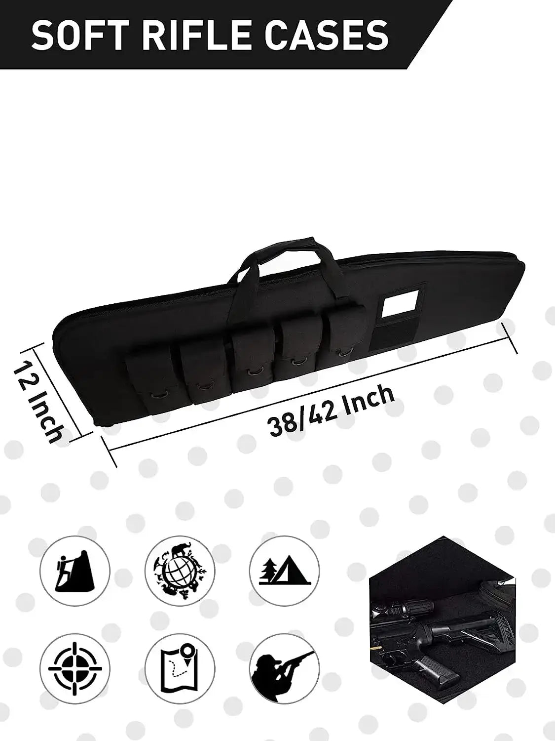 38/42 Inch Tactical Soft Rifle Case (1000D Nylon, 5 Magazine Pouches)