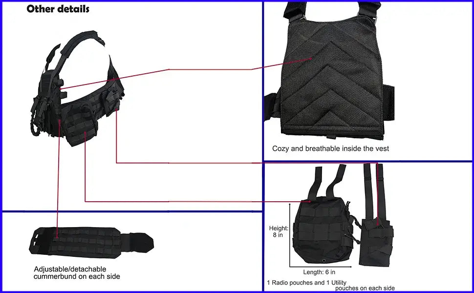 Modular design: Detachable magazine pouches, utility pouches, and radio pouches for customizable loadouts