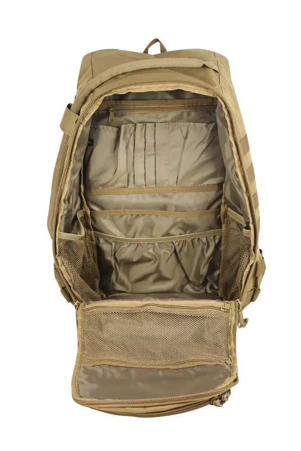 It also has MOLLE webbing for gear attachments, tiered interior pockets, and side bottle sleeves—working just as well for baby essentials, tactical gear, or daily carry.