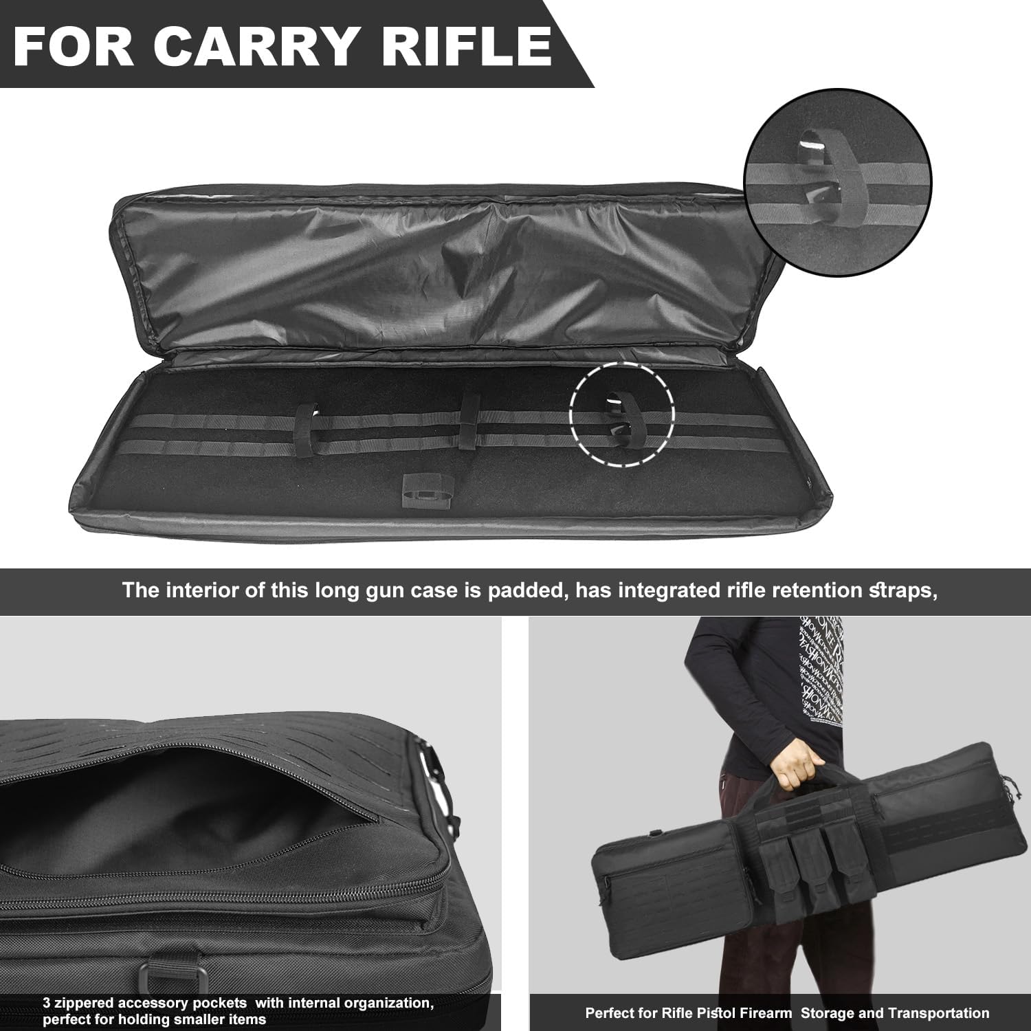 - 【Gun bag for rifles】:Soft rifle bag dimension: 42.5 inch x 12 inch x 2 inch.Rifle Case will hold a rifle or shotgun up to 42" long. The interior of this long gun case is padded, has integrated rifle retention straps, and lockable zippers to keep your weapon secure and safe