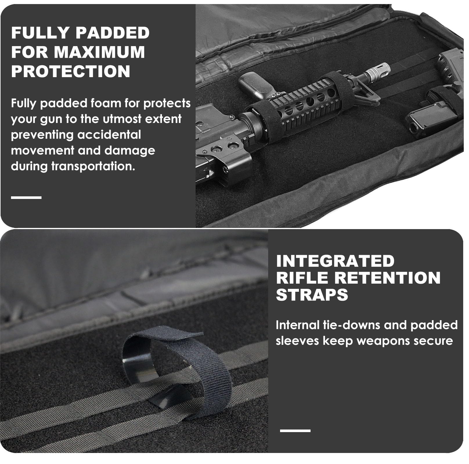 - 【Versatile】:Suitable for outdoor hunting shooting range sports storage and transportation,paintball, airsoft use.Fully padded foam for protects your gun to the utmost extent preventing accidental movement and damage during transportation